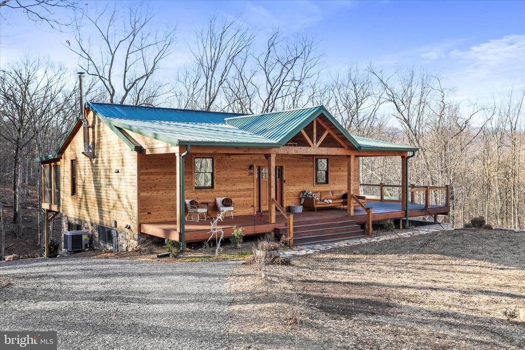 Incredible Mountain Retreat Home - Your Dream Awaits! Discover an extraordinary property that comfortably sleeps 12 to 14 adults—perfect for corporate retreats, short-term rentals, or a personal luxury escape. This custom-designed mountain retreat spans over 2,800 sq. ft. of stunning living space. Step into the great room featuring soaring cathedral ceilings, tongue & groove pine walls, and random-width red oak flooring. Experience the warmth of the wood stove with a majestic stone hearth, paired with expansive windows that offer breathtaking views of nature. The elegant half bath showcases a custom mahogany vanity and a river stone vessel sink. The chef's kitchen dazzles with quartz countertops, solid hickory cabinets, a farmhouse fire clay sink, and gray slate flooring. Enjoy the convenience of new Wi-Fi-enabled appliances and a striking white oak live edge island. A custom mahogany and marble walk-in coat closet adds sophistication. Retreat to the owner's suite, boasting 9 ft ceilings, pine accents, and large windows that draw you to the outdoors. The luxurious bath features a spacious double shower, a freestanding air tub, a bidet, heated floors, and custom mahogany double vanity with marble accents. Venture to the next level, where a warm entertainment room awaits, adorned with real oak LVP flooring, a natural field stone wall, and a cozy wood-burning stove. Two spacious bedrooms offer high ceilings and large windows, with one room leading to a private lower patio. The exterior is equally stunning, featuring red cedar T&G siding, Eldorado stone foundation, and a blue stone patio. Relax in the Western cedar screened porch or enjoy your morning coffee on the mahogany deck. Follow the natural stone walkway to the serene pond area with a picturesque waterfall. Unwind in the sauna house equipped with Wi-Fi heating control, plus two unique Tiny Houses—an artist studio perfect for yoga or overflow guests, and another with red oak interiors, custom loft, and cable railings. Surrounded by low-maintenance landscaping, including a wildflower and pollinator garden, mushroom farm, and deer-proof raised garden beds, this property is a sanctuary of tranquility. All this, just 10 miles from Berkeley Springs, WV, with access to the Cacapon River and within 2.5 hours of DC & Northern VA. Schedule your private viewing today—an incredible world of possibilities awaits!