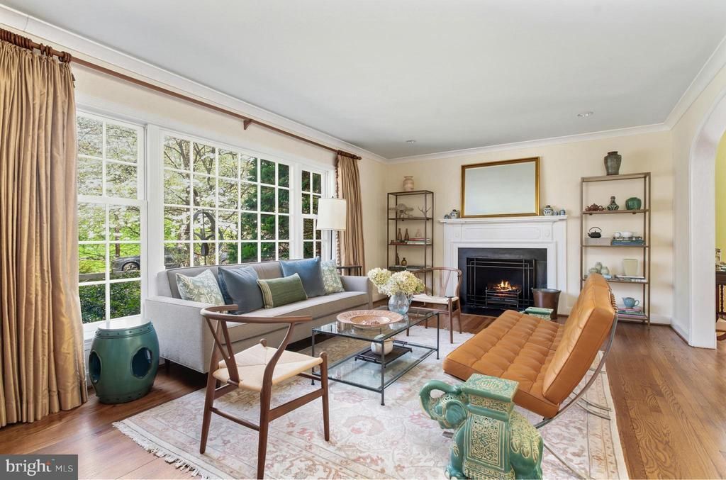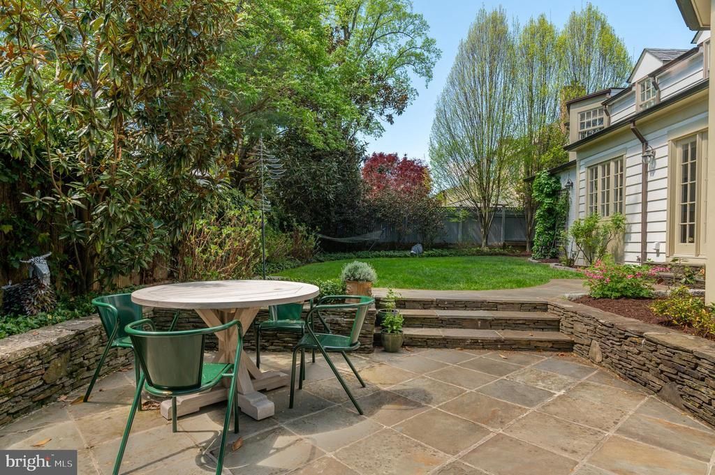 This gorgeous home is situated on a quiet, flat lot in Bethesda’s coveted Westmoreland Hills, with lush garden views from every room. Inside, the effortless flow between rooms is perfect for everyday living and gracious entertaining. The highly desirable layout also features four comfortably sized bedrooms, including a primary suite, all on the second floor. This is an immaculately maintained, thoughtfully updated residence in an idyllic setting, just a few blocks from the D.C. line. The exterior showcases timeless, quality materials: a Buckingham slate and copper roof, copper gutters, Bevolo lanterns, and flagstone paths edged in Belgian block. At the core of the home, the English-style kitchen is well-appointed and refined. A graceful arch over a limestone counter affirms that this is not a cookie-cutter build. Zellige tiles and slate floors add texture and character. A Sub-Zero fridge and Bosch dishwasher are concealed behind custom panels, while floor-to-ceiling cabinets provide abundant storage. The sunny breakfast area, with a soaring ceiling and skylight, invites morning lingering. French doors beckon to the patio and garden, where camellias, magnolias, hydrangeas and David Austin roses provide a succession of blooms, and the green backdrop persists year-round. A series of distinctive spaces radiate from the kitchen: a striking hexagonal library (equally suited to be a playroom or sunroom) lined with custom built-ins; an elegant dining room with views that extend out a generous bay window; and both formal living and family rooms, each with oversized windows and its own fireplace. A mudroom between the kitchen and garage keeps outerwear out of view. Upstairs, the primary suite feels quietly luxurious, with a claw-foot tub, walk-in closet, and charming study overlooking the gardens. Each of the other bedrooms can easily accommodate zones for sleeping, study, and storage. Having a washer and dryer on this floor eases mundane routines. The lower level offers versatility, with a full bath, third fireplace, custom built-ins, and adaptable space that can serve as a rec room or home gym. An additional legal bedroom or private guest suite is also possible, with an exterior door leading to a side patio. Modern enhancements have been integrated seamlessly. Automated irrigation and exterior lighting, an EV fast charger, a Ring doorbell, and a high-efficiency heat pump HVAC system ensure the home lives as beautifully as it looks. Just moments away, Westmoreland Park features tennis courts, a playground, and wooded trails that connect to the scenic Capital Crescent Trail. The shops and dining of Spring Valley — including neighborhood favorites Millie’s and Wagshal’s — are all walkable, while commuting is refreshingly convenient via Massachusetts Avenue or nearby access points into Virginia and greater Maryland.