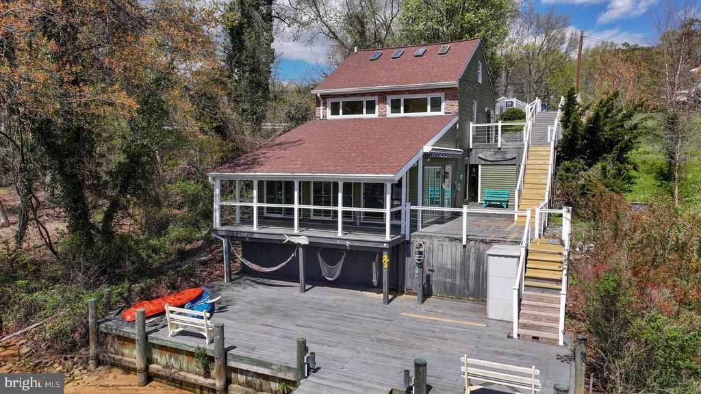 MOTIVATED SELLER! Waterfront Retreat on Long Cove (off Stoney Creek) offering over 1,600 sq. ft. of living space across three levels! Experience the best of waterfront living at 811 Long Cove Road, complete with a private pier, two boat lifts, and approximately 4' mean low water—perfect for boating enthusiasts. This 4-bedroom home offers comfortable, flexible living spaces throughout. The recently renovated eat-in kitchen features new cabinetry, granite countertops, a center island, and luxury vinyl plank flooring that flows seamlessly into the spacious family room. The family room is a standout with its vaulted ceiling, pellet stove, and multiple sliding glass doors leading to a 22' x 8' covered waterside deck—ideal for entertaining or relaxing while enjoying tranquil water views. The layout is both functional and versatile: Kitchen level: one bedroom and a full bath, Main level: two bedrooms and a full bath, and Upper level: fourth bedroom or bonus space—perfect for guests, a home office, or hobby room. Outdoor living truly shines with multiple gathering spaces, including a covered porch, three additional decks, retractable awning, and an outdoor shower. Tiered stairs lead to the water, and a level green space sits just off the private parking pad, offering both convenience and privacy. Additional features include: Separate laundry room with front-loading washer & dryer, Dual-zoned HVAC, Water conditioning system, 17.5' x 23' detached garage with electric and opener, and Storage shed. Recent updates: Roof, siding & gutters (with guards) – 2019, Kitchen cabinets, granite countertops, dishwasher & sump pump – 2025. Room measurements are approximate. This is the waterfront lifestyle you’ve been waiting for—boating, entertaining, and relaxing from your own private retreat.